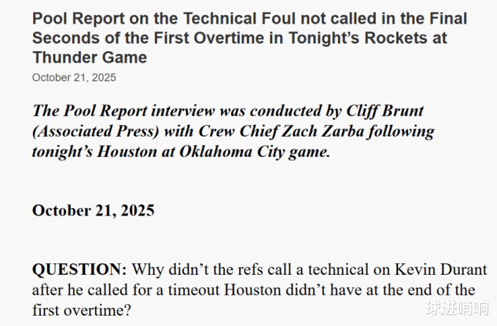 为何第一个加时最后时刻不吹罚火箭队的关键技犯?赛后裁判正面给出答案!三度犯错导致新东家火箭无缘开门红,杜兰特赛后公开揽责,同时回应雷霆球迷漫天嘘声,直言感受到了爱与尊重。