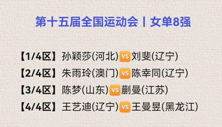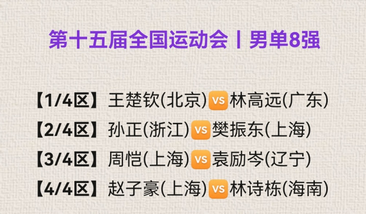 11月13日全运会乒乓球项目成年组高端局的具体对阵形势,请看下文详细介绍。