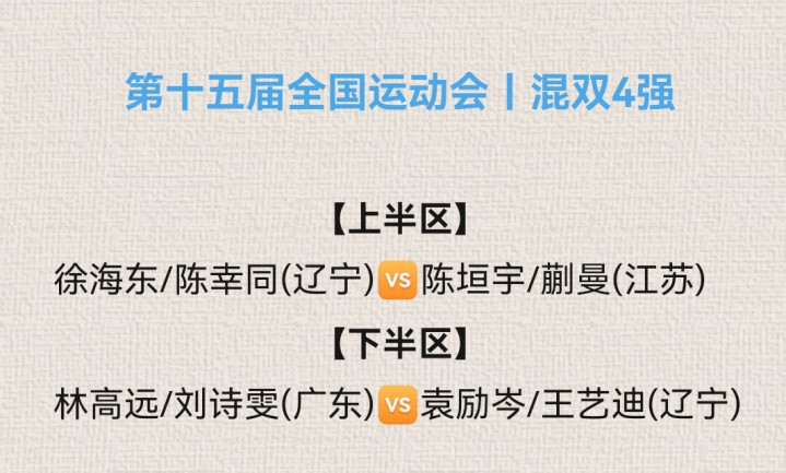 混双两场半决赛,都有辽宁队的身影。诗和远方组合如果不能完成阻击,辽宁队两对混双有会师决赛的可能。