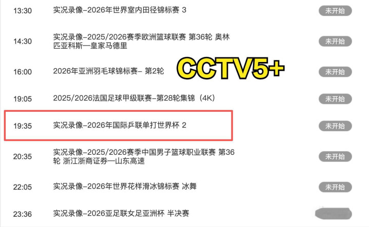 今日CCTV5+节目表