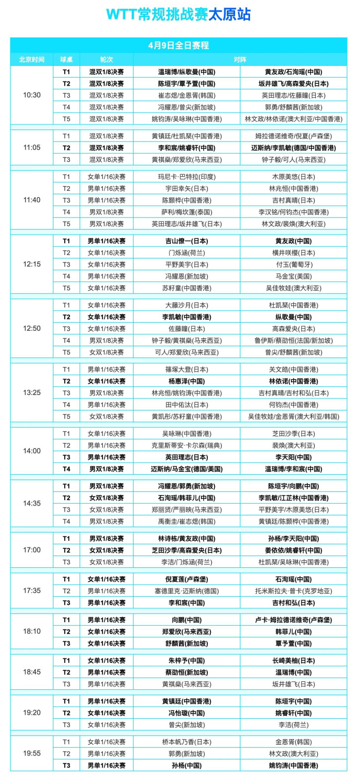 太原挑战赛赛程表