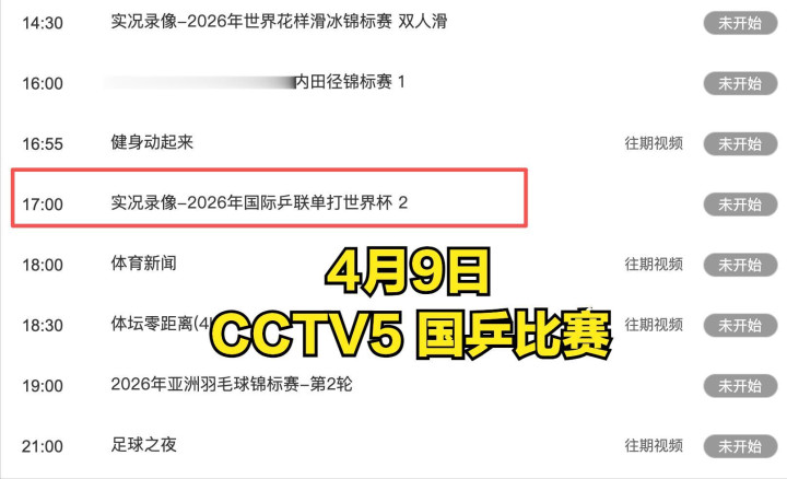 中央5台直播乒乓球时间表: 4月9日CCTV5直播国乒! 林诗栋复出首秀