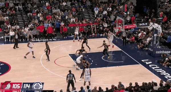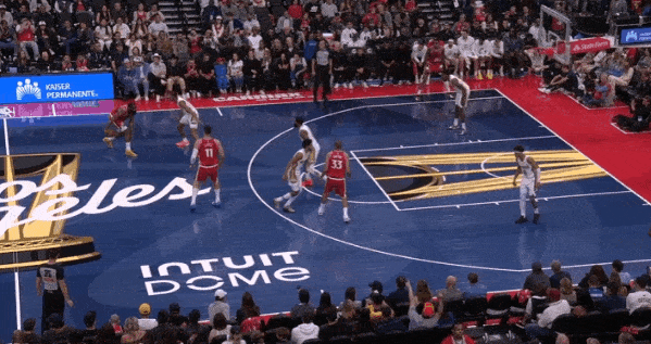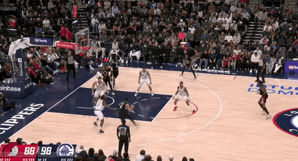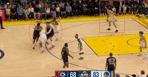 在对阵勇士的比赛,这场波斯特大量错防科林斯,然而第二节快船给出的解法居然是在科林斯在更加静态、绝对体型吃亏的情况下,低位强打、顶投三分,而不是利用掩护顺下的冲击力、运动能力去打击波斯特——好一个“扬短避长”。