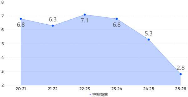 赛季至今科林斯总护框尝试仅有12次,甚至不如保罗,每36分钟仅有2.8次——哪怕在观感、数据下科林斯尝试护框的回合成功率极高。