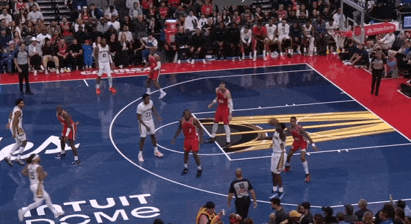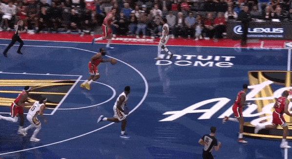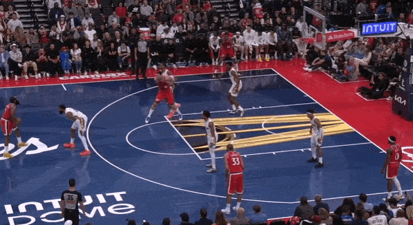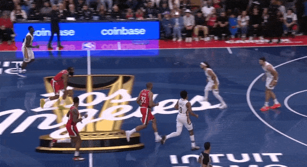 接哈登一传发动转换进攻。